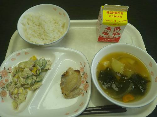 モロヘイヤ、オクラがふんだんに使われた「ネバネバ野菜のおかか和え」。ネバネバ野菜にキャベツ、ニンジンの歯ごたえ、そしておかかの風味で体が元気になるようなメニューでした(^^♪