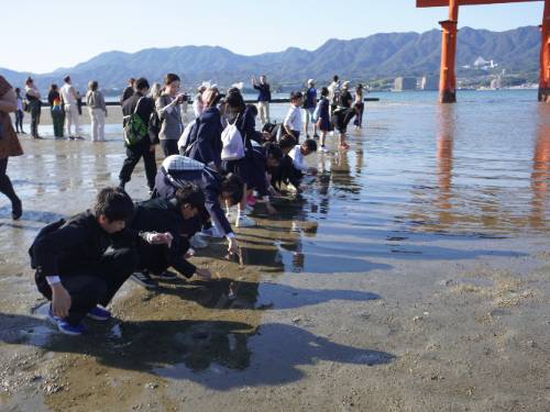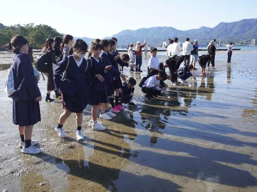 修学旅行のピーク時より少ないといっても、約300人の小中学生が入園しています。他にも一般のお客さんや福祉施設の団体のお客さんもおられ、にぎやかでした。