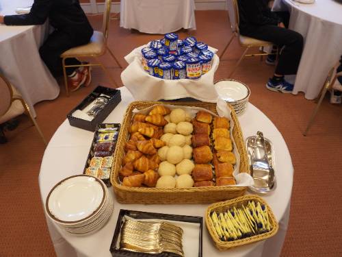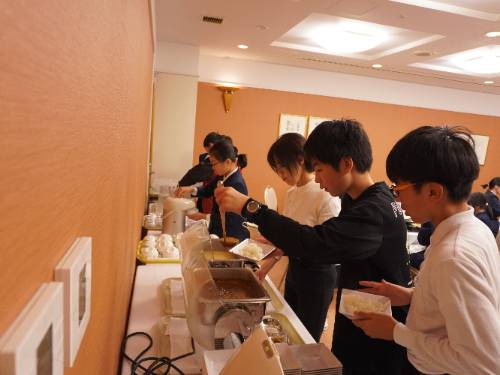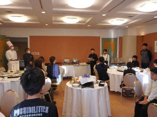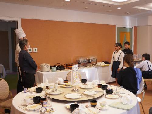 ホテルの食事担当の方からナプキンの使い方や食事の後のマナーなどを聞いて勉強になりました。
