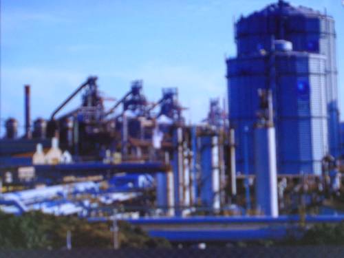 途中の工場で下車し、工場内2階の通路を歩いて見学しました。厚さ25㎝・長さ約30mの真っ赤に熱せられた鉄板が、プレス機で厚さ2mm・長さ800m~900mに延ばされ、筒状に巻かれる工程を見たときは、50m先をコンベアーで流れてくる真っ赤な鉄板が通るだけで、かなりの熱さを感じました。
