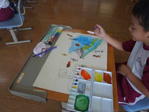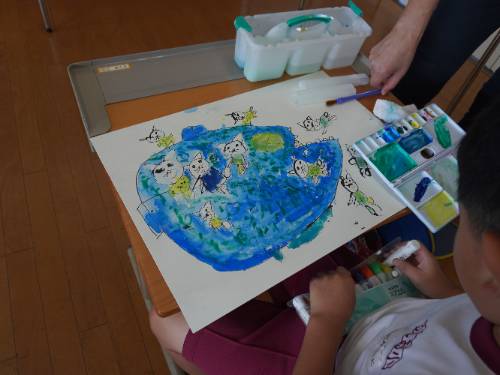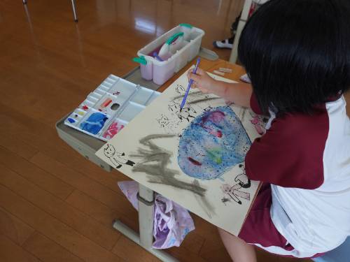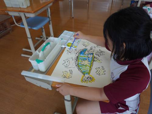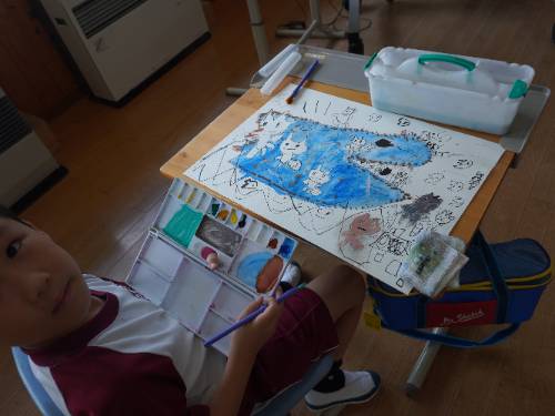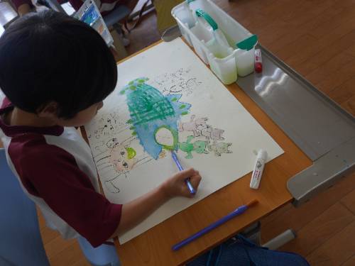 2年生が集中して、でも楽しそうに絵を描いていました。