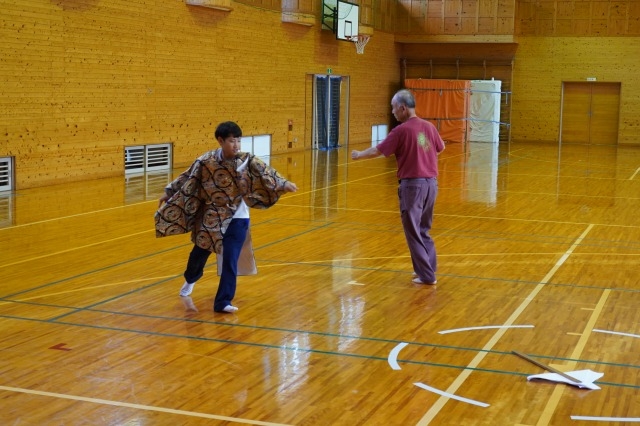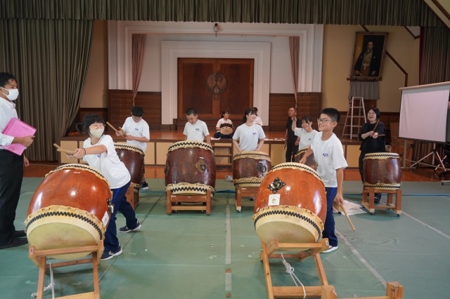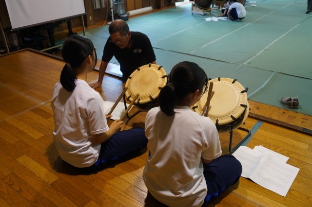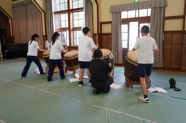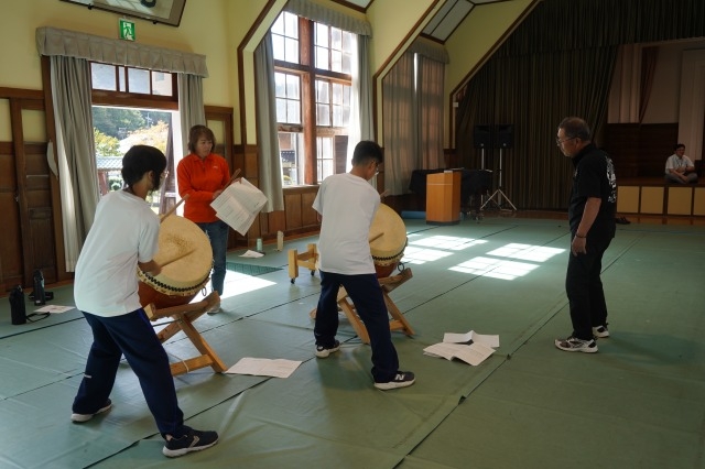 外部の先生方をお招きし、前回に続き「火焔太鼓」と「深野神楽」の2コースに分かれ、練習を進めていきました。