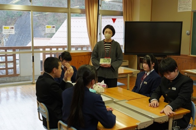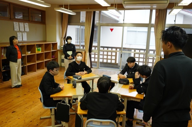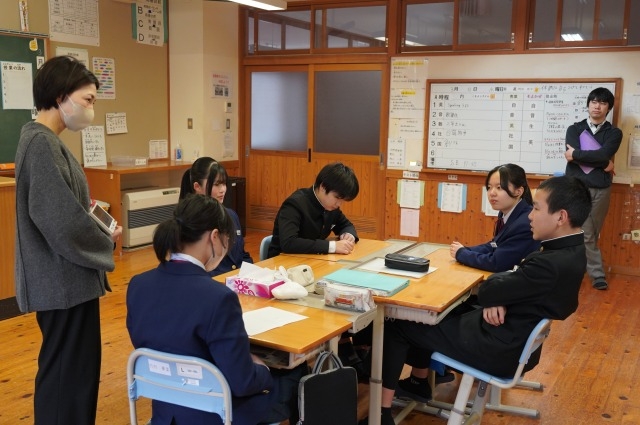 写真は、お互いの思いを伝え合う吉中生の様子です。