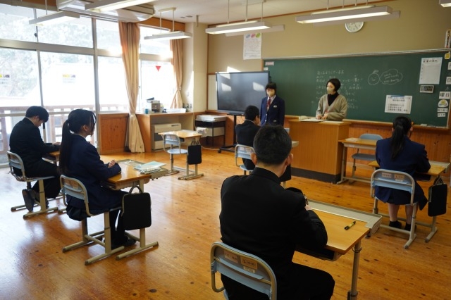 吉中生は朝活動の時間に、全校漢字テストに取り組みました。