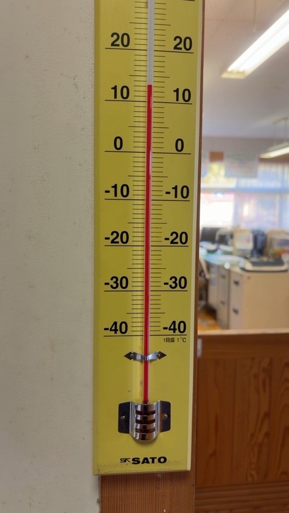 写真は、今朝の職員室前の気温計です。