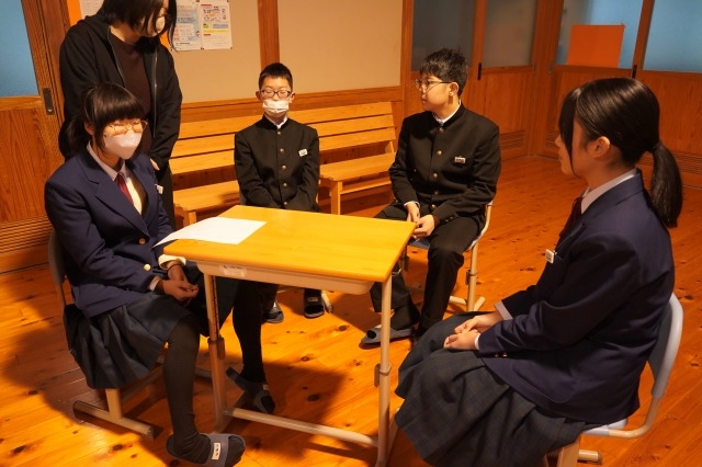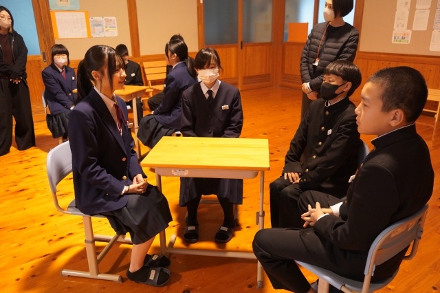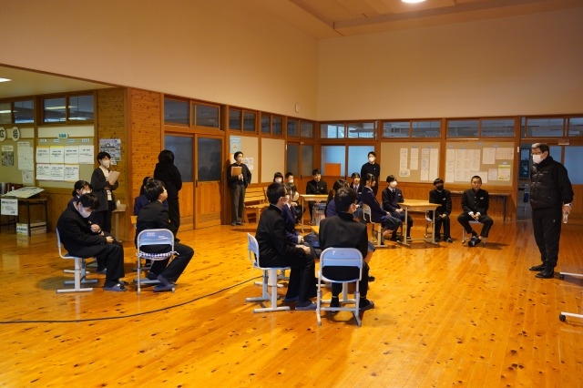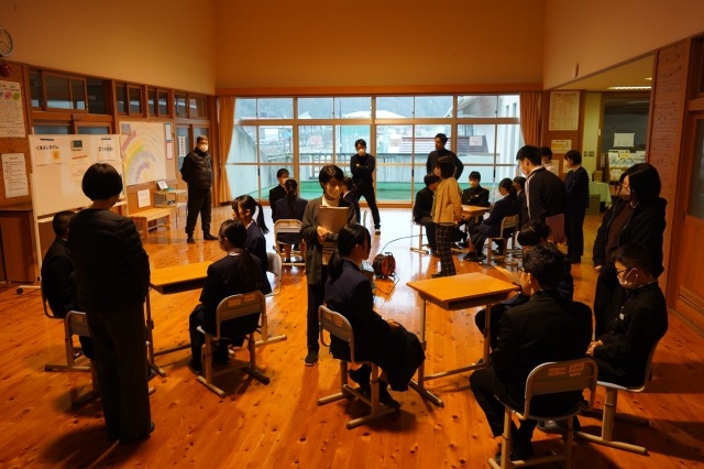 全校生徒が集い、今学期頑張ったことを伝え合ったり、その内容について質問したりして関わり合いました。