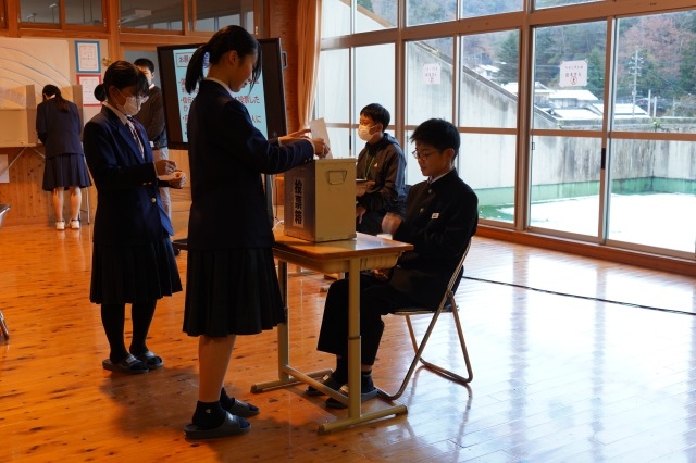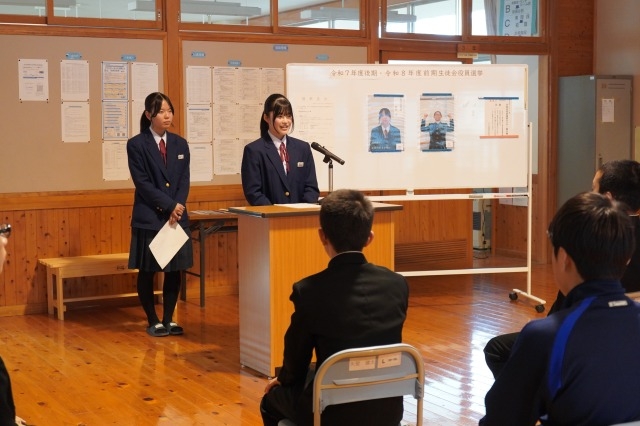 今年度後期及び次年度前期の生徒会長を決めるための立会演説、投票を行いました。