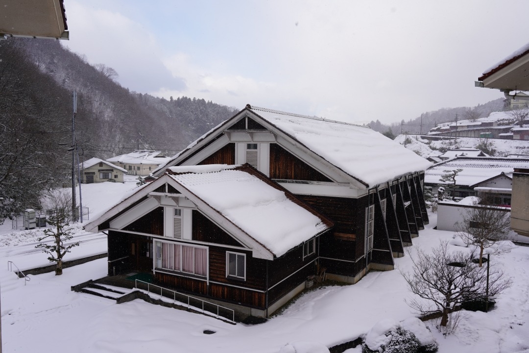 昨晩からの積雪もあり、雪が舞う中での朝を迎えています。
