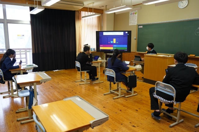 さて、この身の引き締まるような景色の中、吉中生はみんな揃って学習に取り組んでいます。