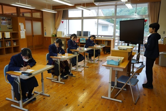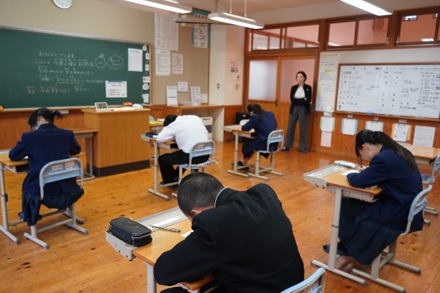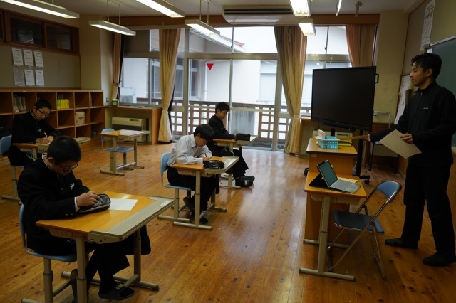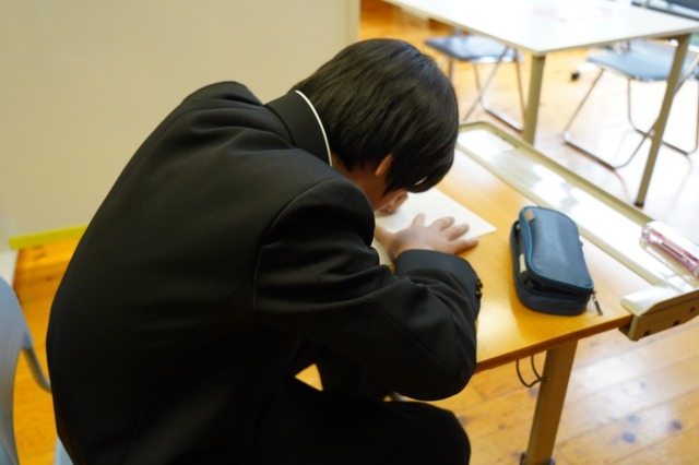 写真は、本番を意識し、みんなで頑張っている吉中生です。