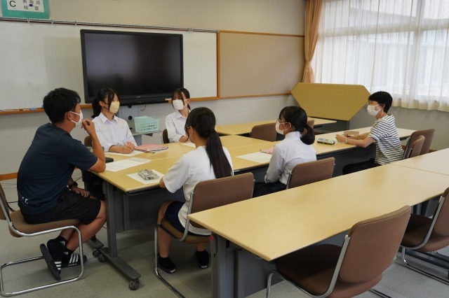 生徒会活動 「くまよしタイム」、始まりました。 2025.5.14 今日から今年度の「くまよしタイム」が始まりました。 年間を通じ(およそ月に2回)、全校で取り組んでいきます。 ☆「くまよしタイム」とは、短時間のグループアプローチを通して、人間関係の絆を深め、 そこから自尊感情を醸成したりソーシャルスキルを育成したりしていくものです。 第1回目となる今日は、各学年で「アドジャン」に取り組みました。 普段あまり話すことのない話題について、互いに朗らかな雰囲気で語り合う時間がもてました。 次回の「くまよしタイム」からは全校で取り組む予定です。 より自分のことを知る、仲間のことを知るよい機会にしていけるとよいですね。