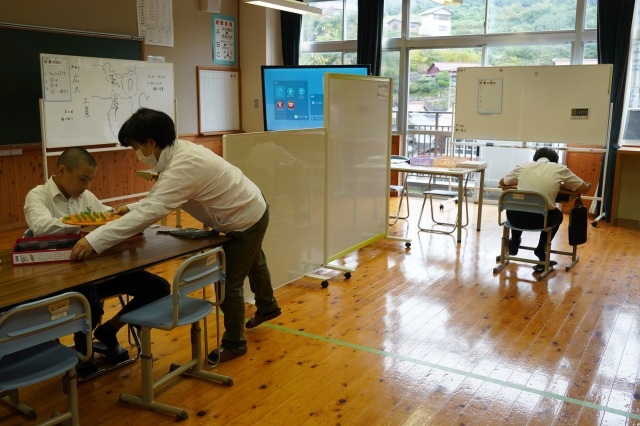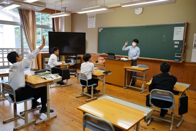 写真は、各教科の授業に集中して取り組む吉中生です。