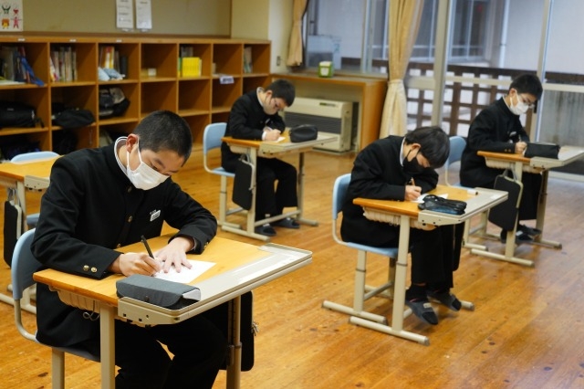 写真は、集中して取り組む吉中生の様子です。