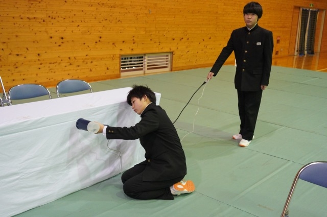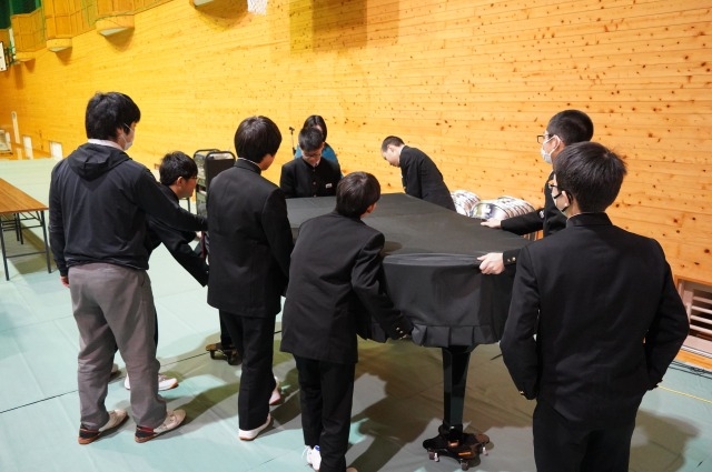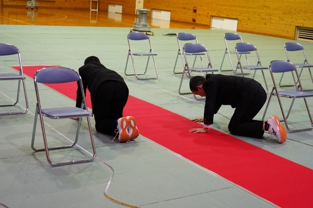 昨日に続き、今日も卒業式に向けた体育館の会場設営を進めました。