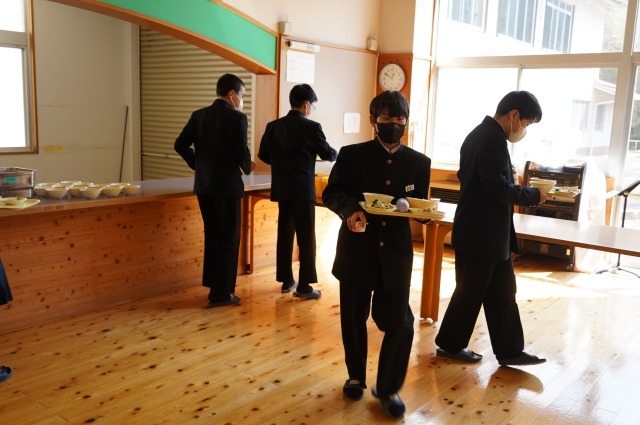 写真は、給食を味わう吉中生の様子です。