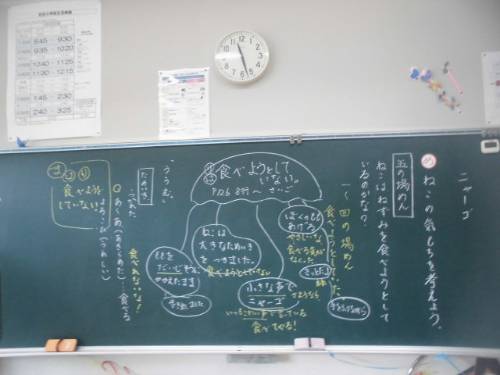 10月2日(木)、2年生は国語「ニャーゴ」の学習をしました。ねこやねずみの言動をしっかりと読み取り、ねこの気持ちの変化について考えました。しっかり考えて自分の考えをたくさん発表していました。最後には、学習したことをもとにして一人ずつ音読をしました。気持ちをこめて上手に読んでいました。