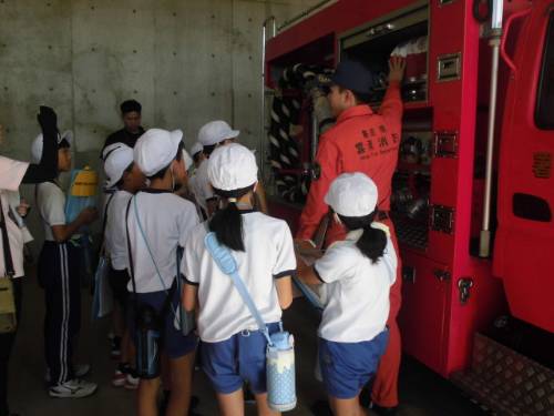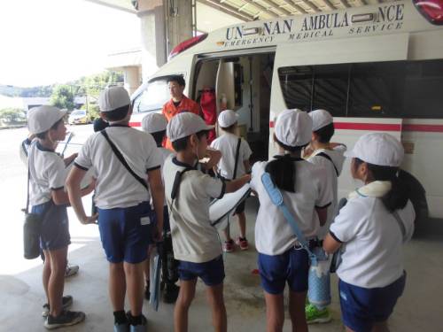 10月1日(水)、中学年は社会科の学習で雲南消防署に見学に出かけました。消防隊員の方から通信指令室の仕組みや消防車の役割などについて教えてもらいました。また、煙体験も行い火よりも煙の方が怖いことを実感しました。この見学を通して、くらしを守る消防署や消防士についてしっかりと考えることができました。