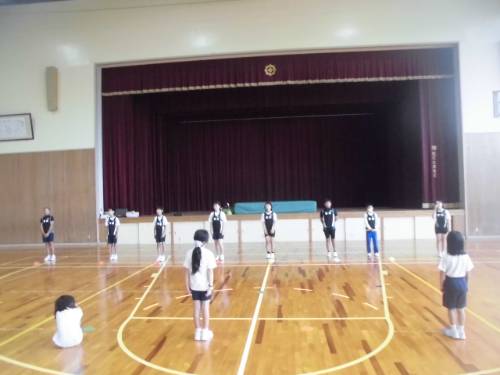 10月8日(水)、雲南市小学校陸上大会の壮行式を行いました。選手が入場し、選手一人ひとりから出場種目と意気込みの紹介がありました。次に2~4年生によるエールがありました。「あげあげホイホイ!」と「train train」の2曲に合わせてのエールでとてもかわいらしかったです。選手代表のあいさつでは、大会に向けての高まる気持ちを発表しました。最後に校長先生から選手への激励の言葉と2~4年生への感謝の言葉がありました。明日の大会では自己ベストを目指して頑張ってほしいと思います。