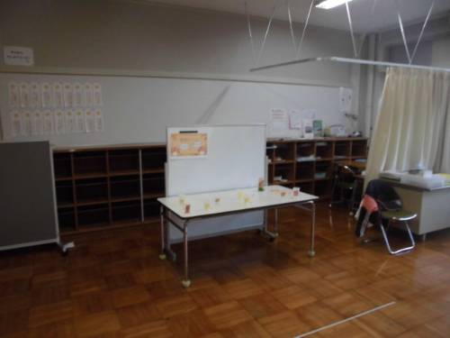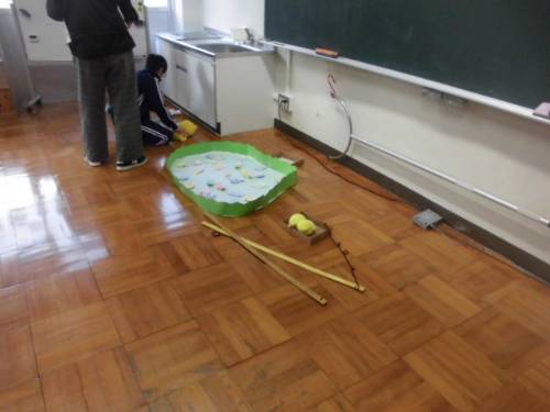 11月26日(水)に、つき組・たいよう組が合同で「あきまつり」を計画しています。各学級を招待して楽しんでもらおうと準備を進めています。いろいろな遊びのコーナーを工夫して作り、今日はそのリハーサルを行っていました。実際に自分たちでやってみるなどしながら、最後の仕上げをしていました。明日が楽しみです。