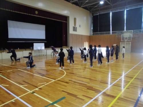 12月15日(月)、2~3校時にキラキラ雲南の三瓶さんにおいでいただき、ダンスを教えてもらいました。まずは、ウォーミングアップでいろいろなところを伸ばしながら、曲に合わせて踊りました。そして、吉田小学校の今年のダンス曲YOASOBIの「アドベンチャー」の練習に取り組みました。子どもたちはノリノリで練習し、あっという間に習得し、踊れるようになりました。次回は少々残っている続きに取り組み完成となります。
