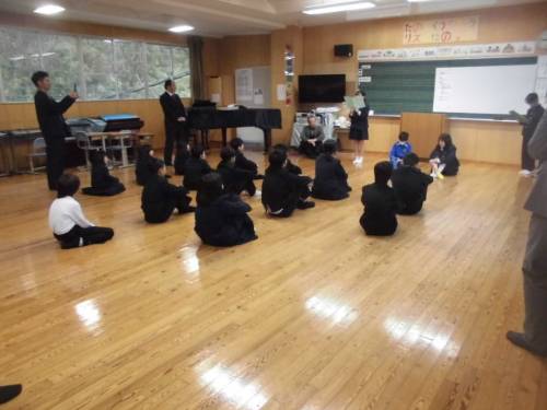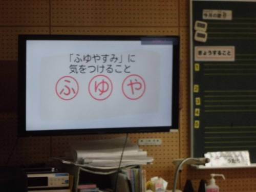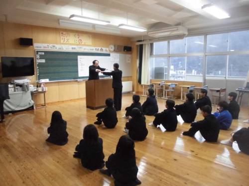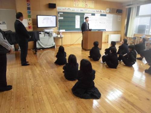 12月25日(木)、2学期の最終日となりました。児童発表では4人の児童が2学期がんばったことを発表しました。次に、税の絵葉書コンクールの表彰を行いました。終業式の校長先生のお話では、2学期を振り返って、「思いやりの行動力」が大切であり、みんなに備わってきていると話されました。また、新しい年を迎えるにあたり、新年の決意(自分が努力すること)を考えてほしいと伝えられました。その後、生徒指導主任から冬休み中に気をつけることについてのお話がありました。合言葉は「ふ・ゆ・や」です。