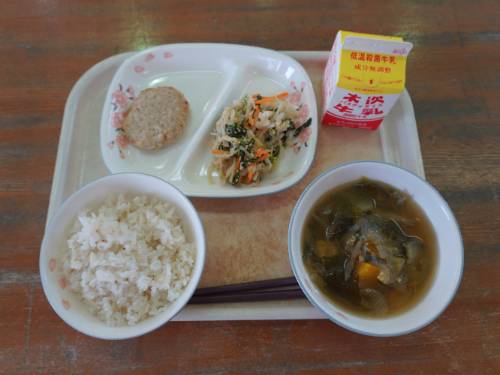 モロヘイヤ、オクラがふんだんに使われた「ネバネバ野菜のおかか和え」。ネバネバ野菜にキャベツ、ニンジンの歯ごたえ、そしておかかの風味で体が元気になるようなメニューでした(^^♪