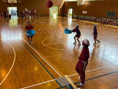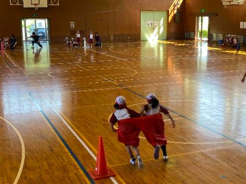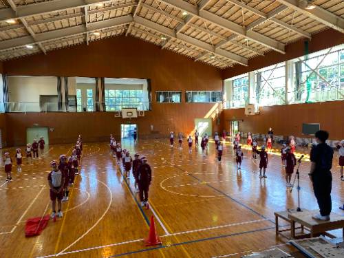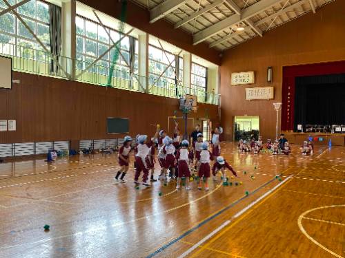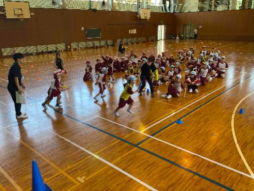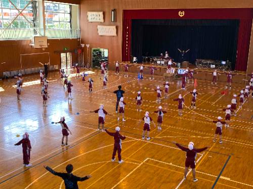 『うしおっ子運動会」の予行練習を、会場となる旧海潮中体育館で行いました。