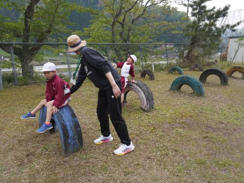 子どもたちは、おいしそうに「ミンチカツ」にかぶりつきながらスパを食べていました!(^^)!