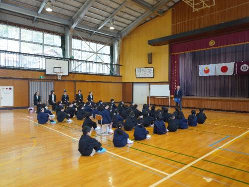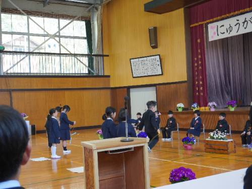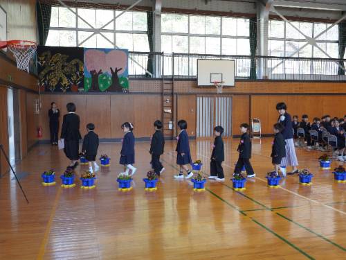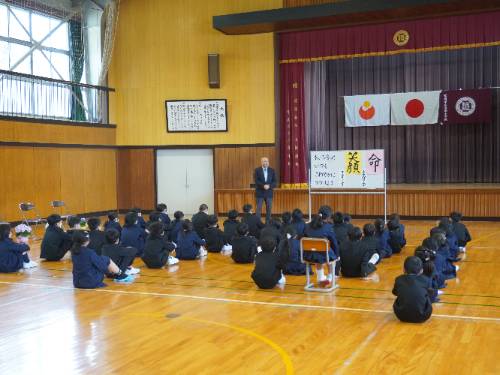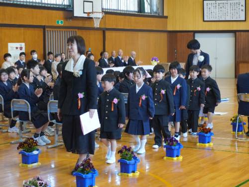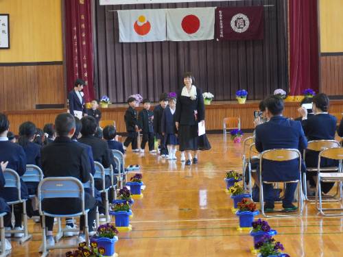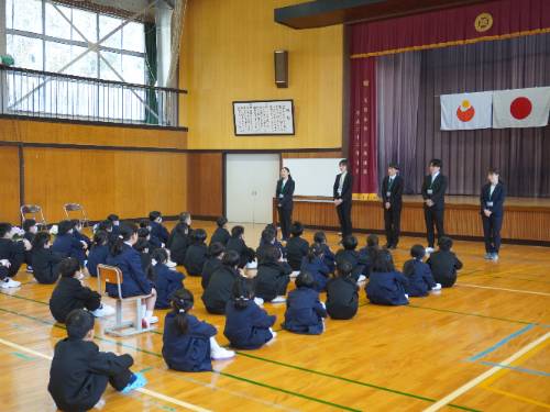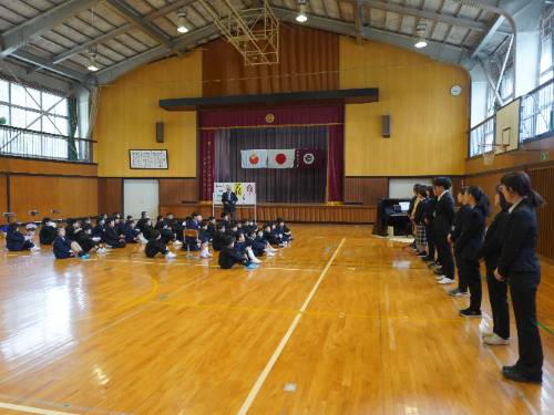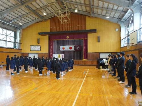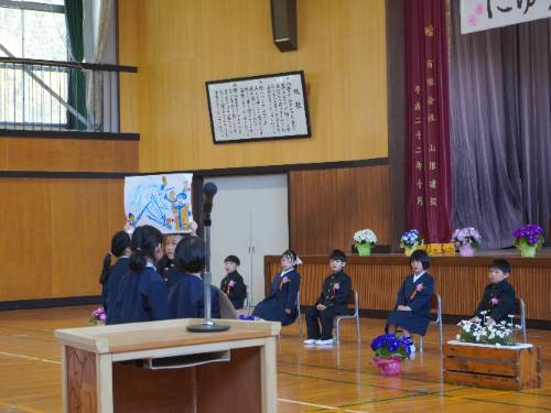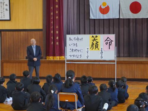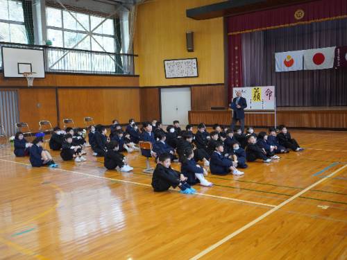 上級生になる皆さん元気のよい「あいさつ」や「へんじ」を心がけ、明るく元気いっぱいの海潮小学校にしてほしい、と話しました。