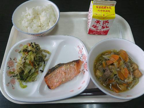 とろみのあるなめこに豆腐やワカメ、大根、小松菜などの具だくさんの「なめこと豆腐のみそ汁」。満足の一派でした(*^^)v