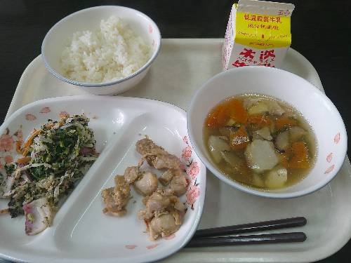 「鶏ごぼう汁」は、鶏肉団子、ごぼう、豆腐、大根、白菜、こんにゃく、にんじん、ネギと具だくさんで満足の一杯でした(^_-)-☆