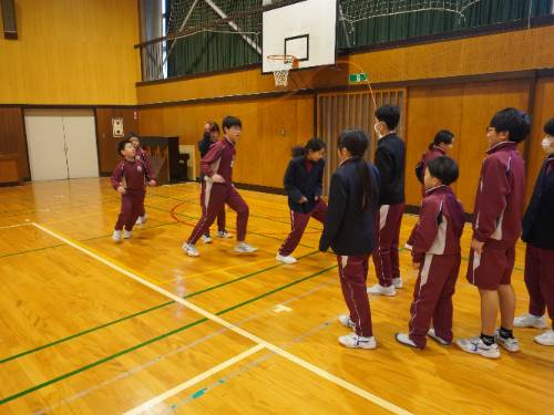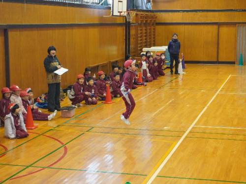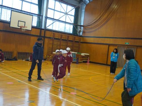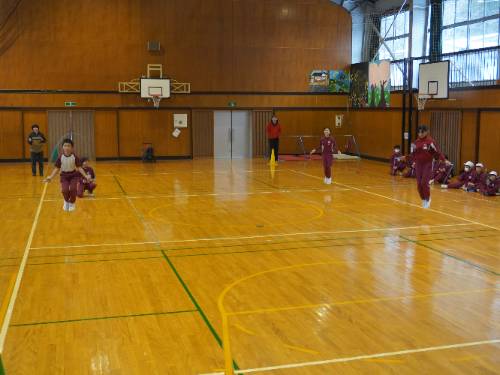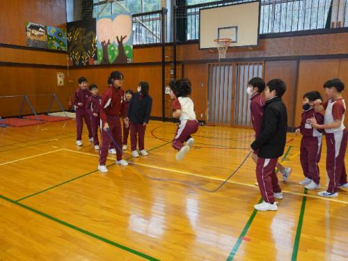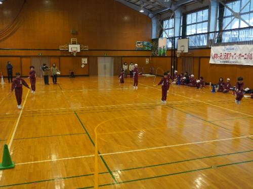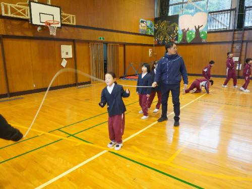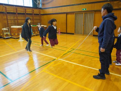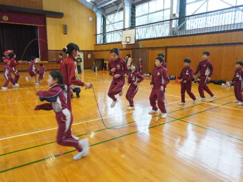 さて「なわとび集会」。全員が自分の選んだ2種目に出場しました。周りの壁際からは、その種目に出場しない全校の児童が見ています。当然緊張したことでしょう。そんな様子が伝わってきました。