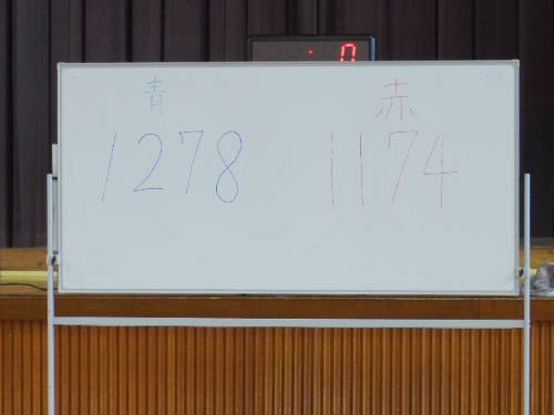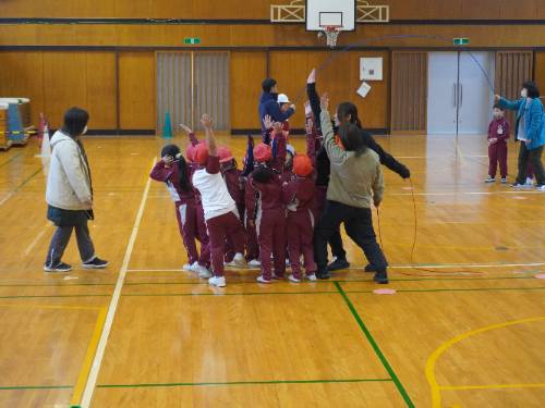 その後、『長縄での8の字跳び』を赤組VS青組で行いました。
