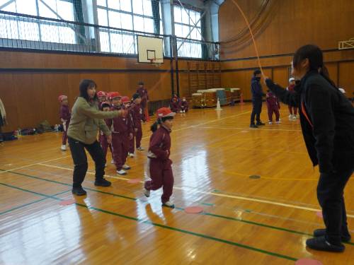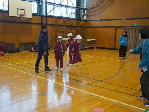 低学年の部では、練習の時には怖くてすぐに縄の中に入れなかった子も、少しでも早く入れるように緊張しながらもがんばりました。