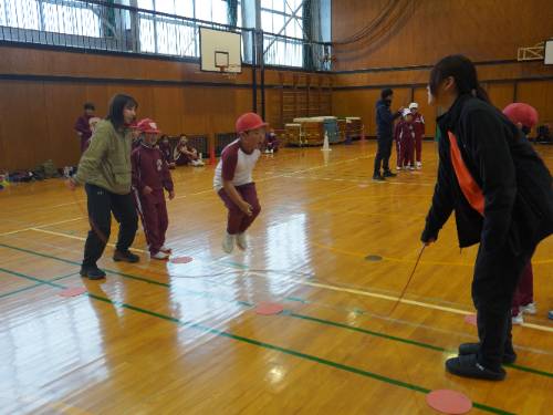 ↓「短なわチャレンジ」と「応援」の様子