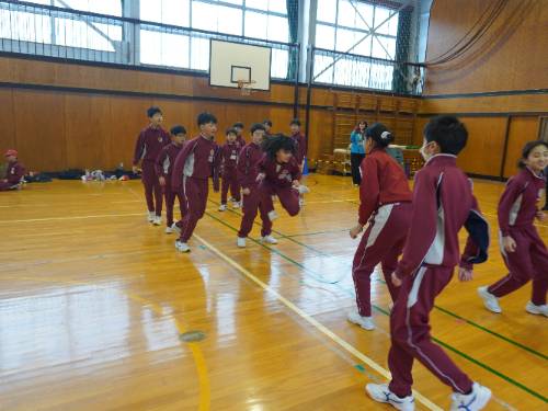 1月28日に予定していた「なわとび集会」。感染症拡大防止の目的で「学校閉鎖」にしたために延期していましたが、やっと開催することができました。