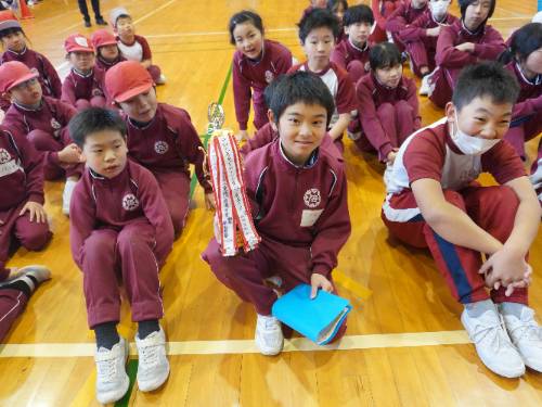 また、この日までに『二重跳びチャレンジ』として、二重とびの前と後ろの合計回数を競った結果の表彰も行いました。なんと、3年連続4年生が優勝しました。