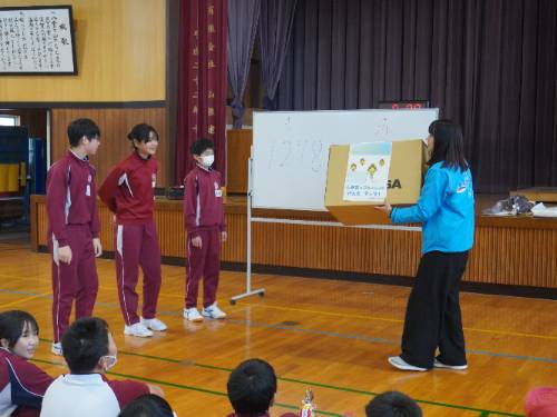 あわせてこの日は、コンビニで有名なローソンさんが後援されている『しまねっこ 元気アップ カーニバル』も開催し、島根県教委から指導主事が来校され、子どもたちのがんばりの様子を参観されました。