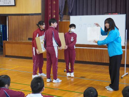 ↓「県教委の先生からお土産をもらいました!」