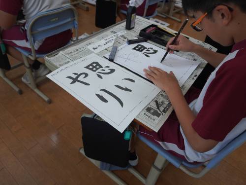 海潮交流センターから会長さんと2名の副会長さんに来校いただき、ていねいに教えていただきました。
