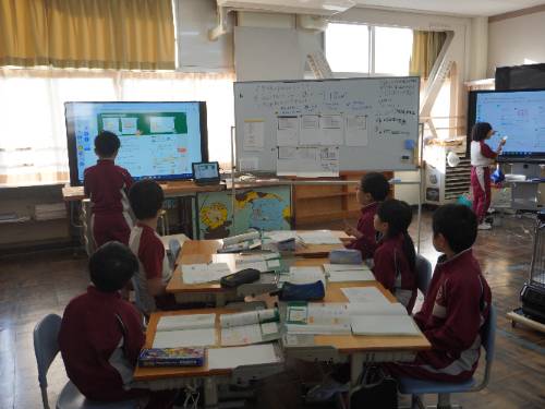 3・4年生の複式授業の見学(2年生、3・4年生)