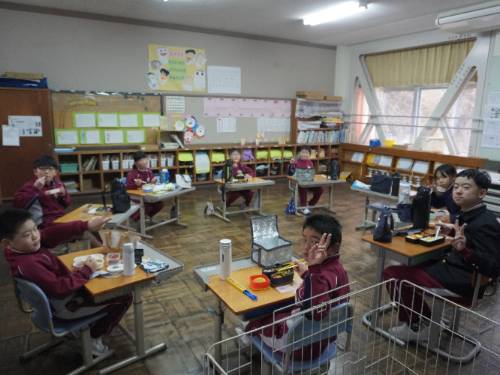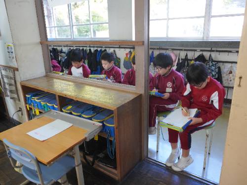 その後3・4年教室に行くと、ろうか側の窓をすべて外して2年生が見学しやすいように3・4年生が整えてくれていました。