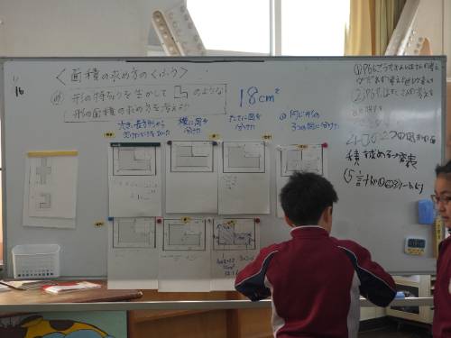 見学する授業は算数で、3年生は「かけ算の筆算〈計算の仕方を考えよう〉」、4年生は「面積〈面積の求め方の工夫〉」の単元でした。