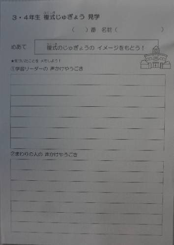まず最初に2年生は教室で「複式の授業見学」について、そのイメージを持てるようにプリントを使って担任から説明を受けました。