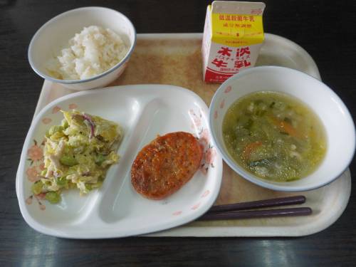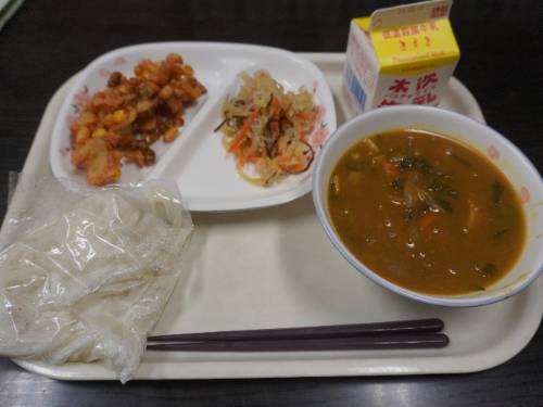 ごぼう、キャベツ、にんじん、ほうれん草などたくさんの野菜をマヨネーズで和えてあった「ごぼうサラダ」。シャキシャキとした歯ごたえが心地よかったです(^^♪