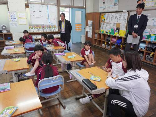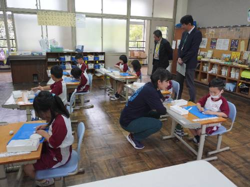 わずか1時間という短い間でしたが、前半に各教室をまわり子どもたちの様子を見てもらいました。