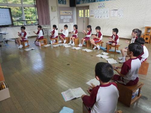 来年度の島根県音楽教育研究大会(雲南大会)」に向けて、各学年に合った『音楽づくり』に取り組んでいます。