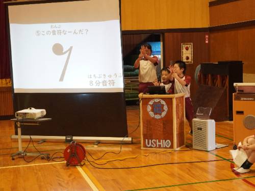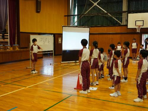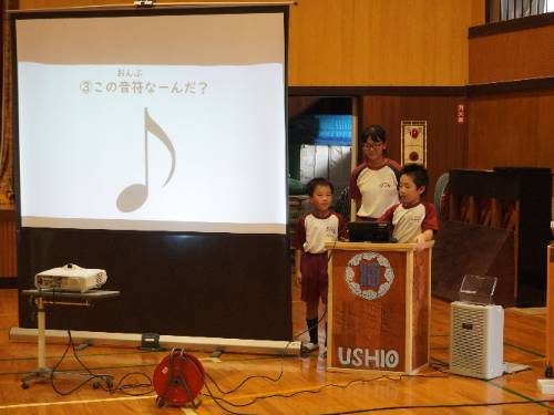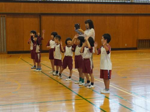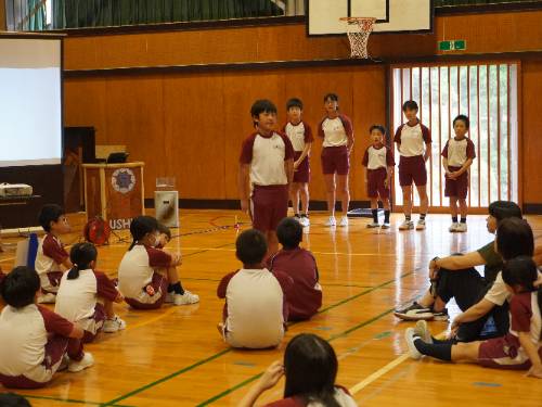 先日、「うしおまつり」で踊る「盆踊り」の練習会の様子をホームページでお知らせしましたが、この度、1年生だけで「うしおのぼんおどりをマスターしよう」の練習会を行いました。