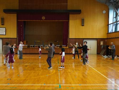 最初にあいさつをした後、踊っている様子を見せてもらいます。
