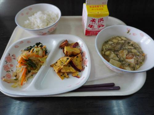 「かぼちゃの豆乳みそ汁」は、かぼちゃの甘みと具だくさんの野菜、それに豆乳のやさしさで満足の一杯でした(*^^)v